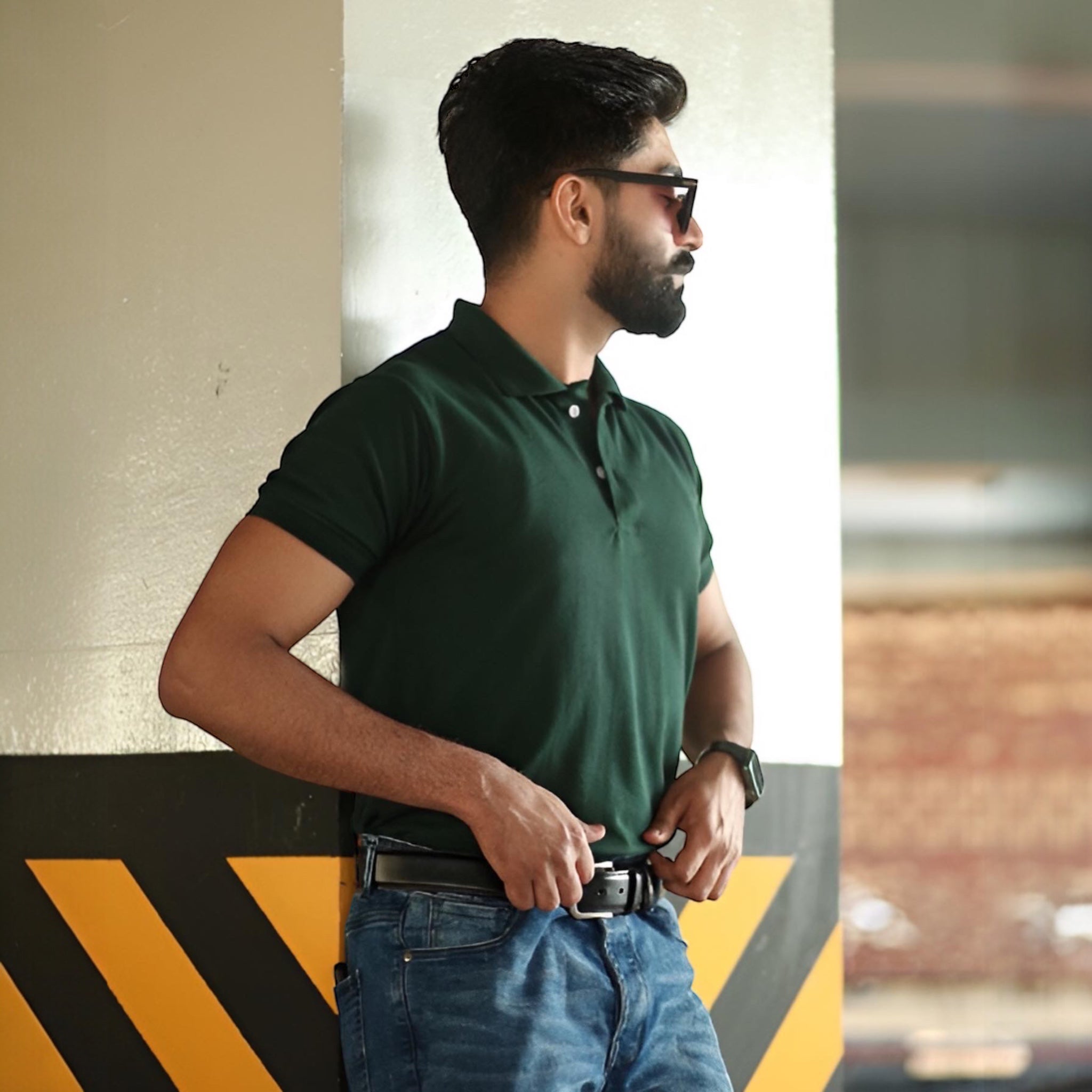 Upgrade your wardrobe with our dark green polo shirt made from 100% cotton