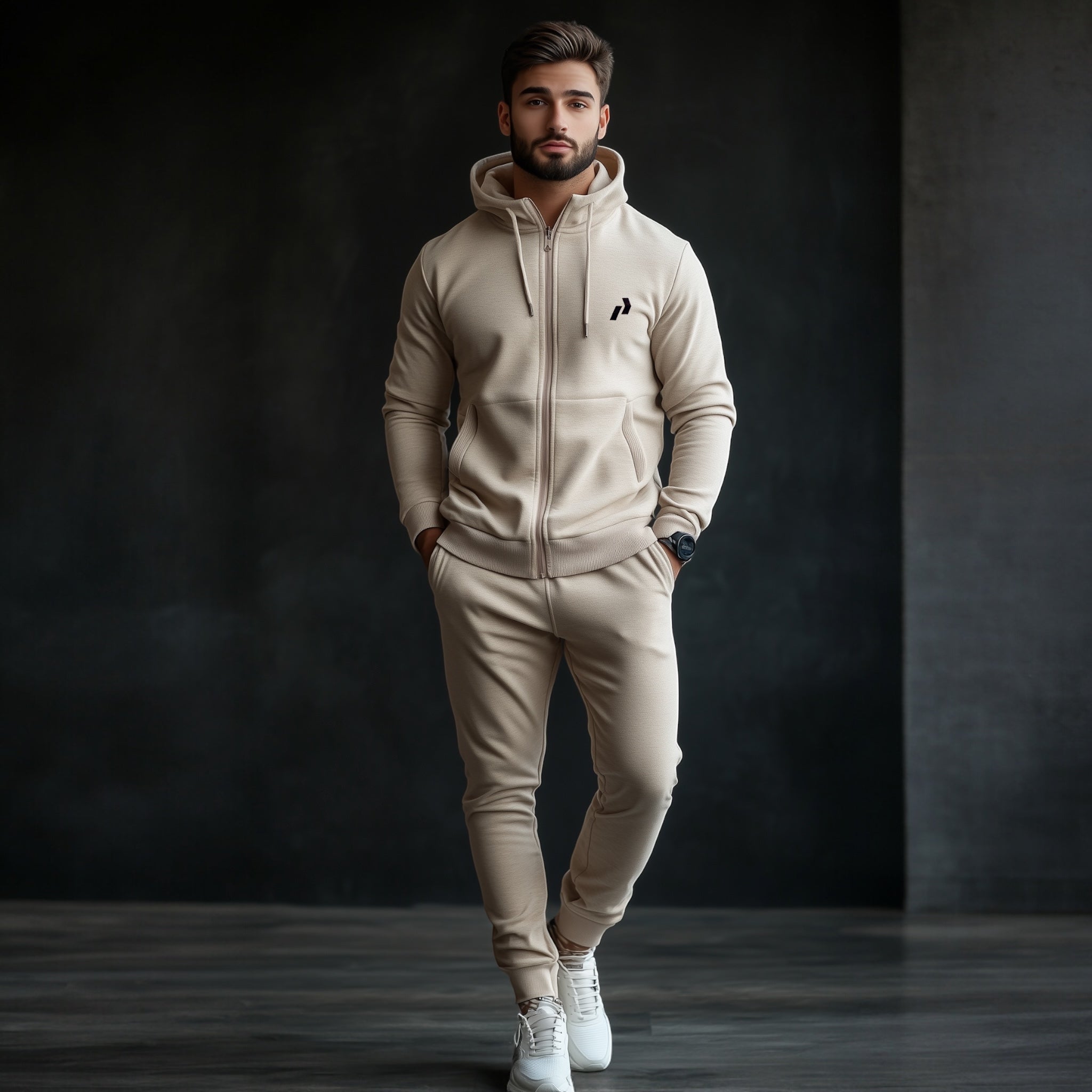 Perfectly crafted 400 GSM Fleece warmth and durable pure comfort .Pragues' Beige Set for Men Fabric 100%...