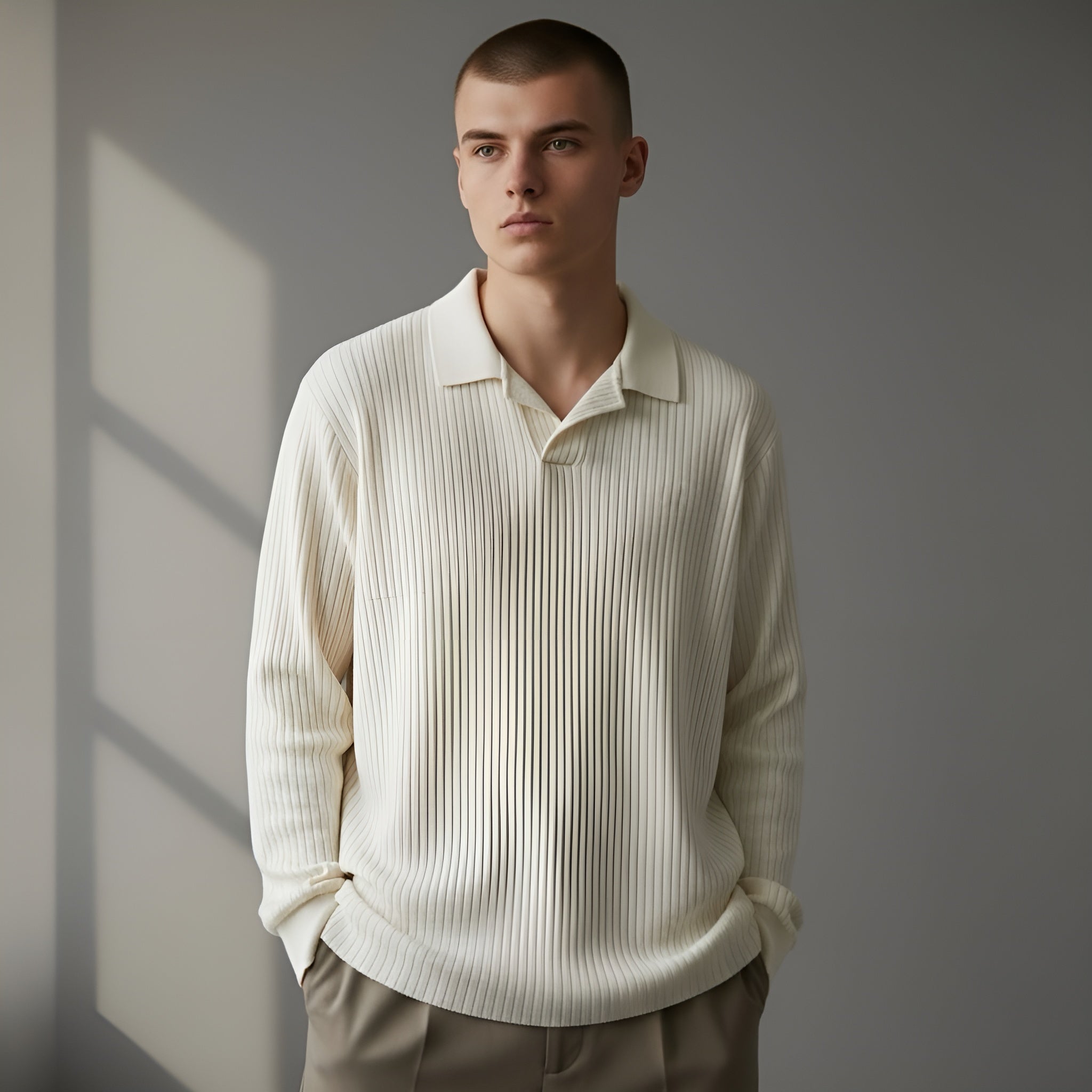 A Refined Heavy knit Fabric  in a soft pearl hue designed with stretch for an easy, comfortable...