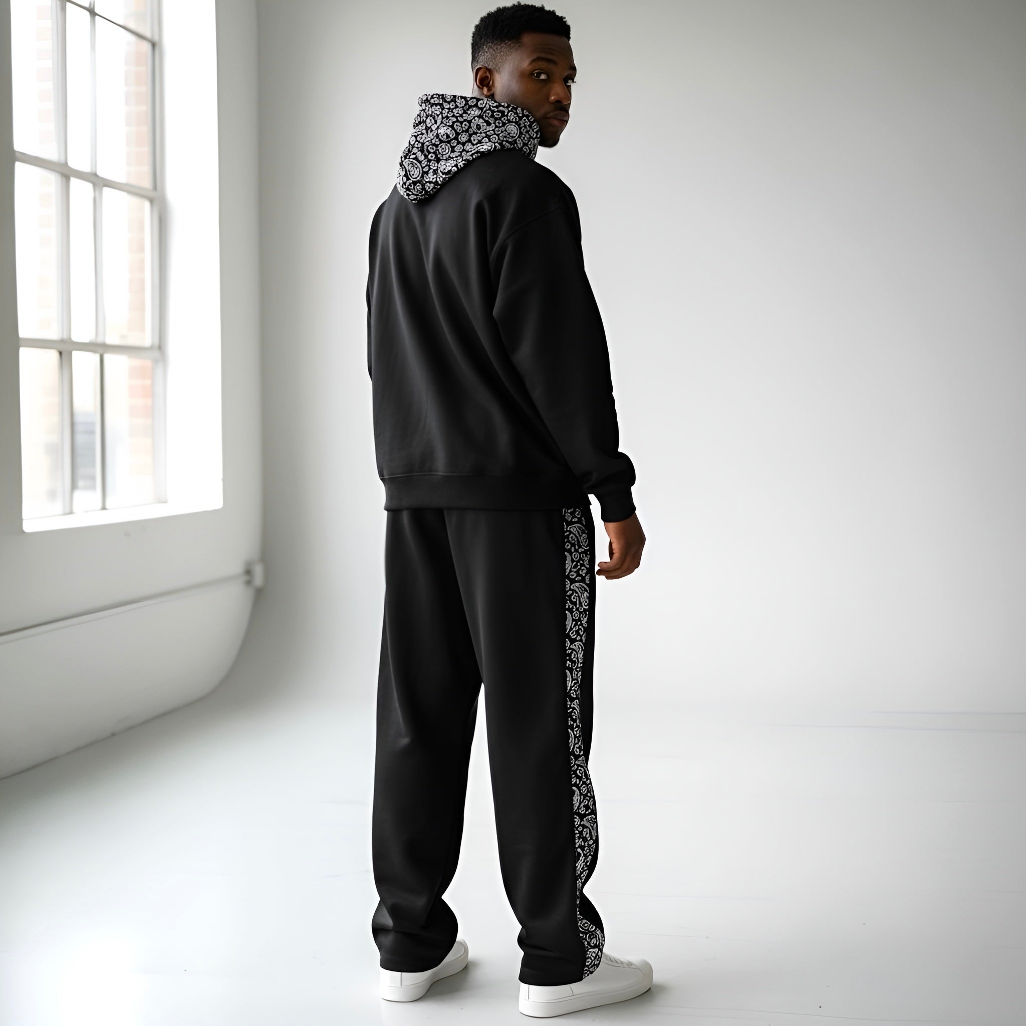 Experience the new 400 GSM heavyweight tracksuit designed with clean minimalism and subtle luxury. A patterned hood...